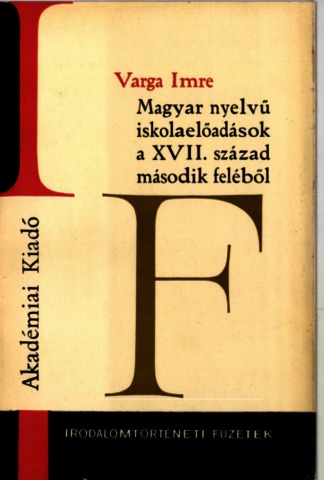 Varga, Imre (1967) Magyar nyelvű iskolaelőadások a XVII. század második feléből. Irodalomtörténeti füzetek (59). Akadémiai Kiadó, Budapest.