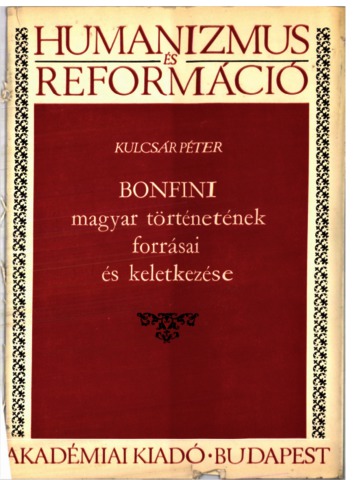 Kulcsár, Péter (1973) Bonfini magyar történetének forrásai és keletkezése. Humanizmus és reformáció (1). Akadémiai Kiadó, Budapest.
