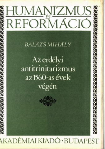 Balázs, Mihály (1988) Az erdélyi antitrinitarizmus az 1560-as évek végén. Humanizmus és reformáció (14). Akadémiai Kiadó, Budapest. ISBN 963-05-4685-X