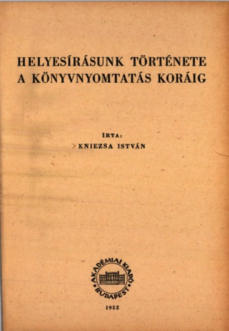 Kniezsa, István (1952) Helyesírásunk története a könyvnyomtatás koráig. Nyelvészeti tanulmányok (2). Akadémiai Kiadó, Budapest.