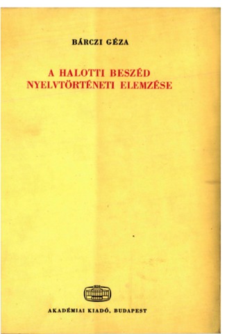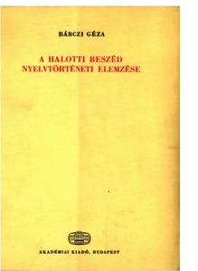 Bárczi, Géza (1982) A Halotti Beszéd nyelvtörténeti elemzése. Nyelvészeti tanulmányok (24). Akadémiai Kiadó, Budapest. ISBN 963-05-2904-1