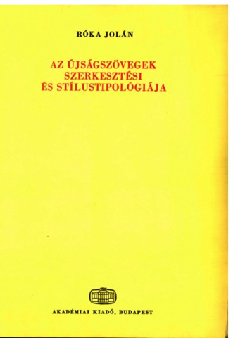 Róka, Jolán (1986) Az újságszövegek szerkesztési és stílustipológiája. Nyelvészeti tanulmányok (29). Akadémiai Kiadó, Budapest. ISBN 963-05-3691-6