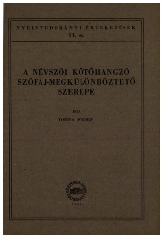 Tompa, József (1957) A névszói kötőhangzó szófaj-megkülönböztető szerepe. Nyelvtudományi értekezések (14). Akadémiai Kiadó, Budapest.