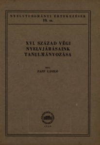 Papp, László (1959) XVI. század végi nyelvjárásaink tanulmányozása. Nyelvtudományi értekezések (19). Akadémiai Kiadó, Budapest.
