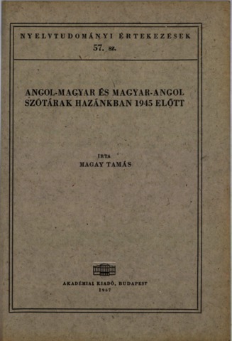 Magay, Tamás (1967) Angol-magyar és magyar-angol szótárak hazánkban 1945 előtt. Nyelvtudományi értekezések (57). Akadémiai Kiadó, Budapest.