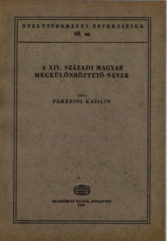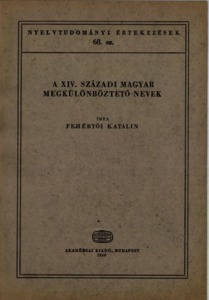 Fehértói, Katalin (1969) A XIV. századi magyar megkülönböztető nevek. Nyelvtudományi értekezések (68). Akadémiai Kiadó, Budapest.