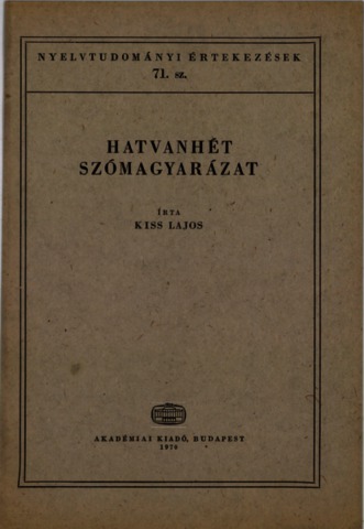 Kiss, Lajos (1970) Hatvanhét szómagyarázat. Nyelvtudományi értekezések (71). Akadémiai Kiadó, Budapest.
