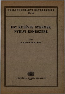 S. Meggyes, Klára (1971) Egy kétéves gyermek nyelvi rendszere. Nyelvtudományi értekezések (73). Akadémiai Kiadó, Budapest.