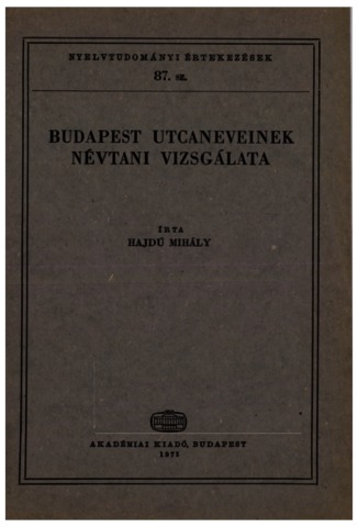 Hajdú, Mihály (1975) Budapest utcaneveinek névtani vizsgálata. Nyelvtudományi értekezések (87). Akadémiai Kiadó, Budapest. ISBN 963-05-0551-7