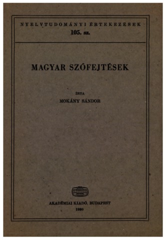 Mokány, Sándor (1980) Magyar szófejtések. Nyelvtudományi értekezések (105). Akadémiai Kiadó, Budapest. ISBN 963-05-2280-2