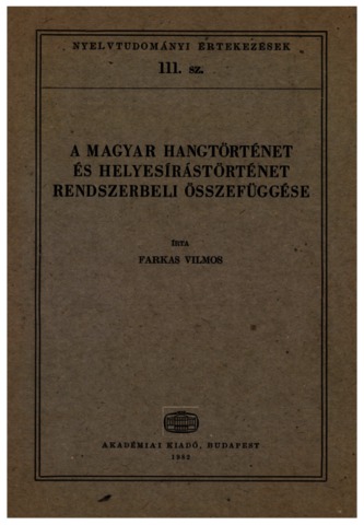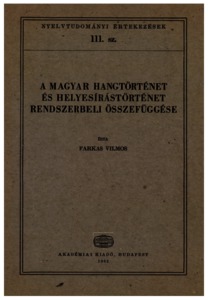 Farkas, Vilmos (1982) A magyar hangtörténet és helyesírástörténet rendszerbeli összefüggése. Nyelvtudományi értekezések (111). Akadémiai Kiadó, Budapest. ISBN 963-05-3004-X