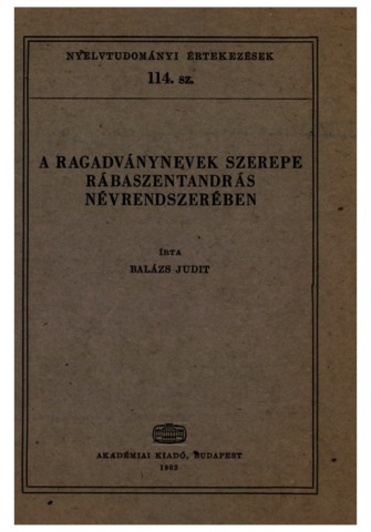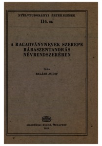 Balázs, Judit (1982) A ragadványnevek szerepe Rábaszentandrás névrendszerében. Nyelvtudományi értekezések (114). Akadémiai Kiadó, Budapest. ISBN 963-05-3040-6