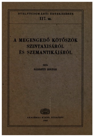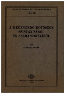 Bánréti, Zoltán (1983) A megengedő kötőszók szintaxisáról és szemantikájáról. Nyelvtudományi értekezések (117). Akadémiai Kiadó, Budapest. ISBN 963-05-3303-0