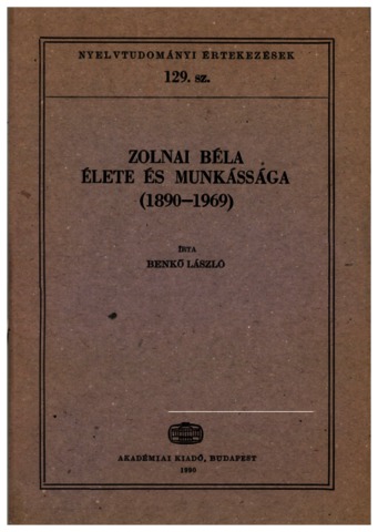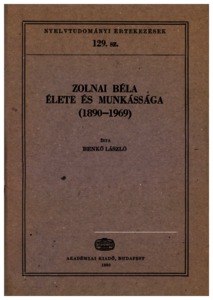Benkő, László (1990) Zolnai Béla élete és munkássága, 1890-1869. Nyelvtudományi értekezések (129). Akadémiai Kiadó, Budapest. ISBN 963-05-5711-8-