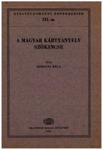 Somogyi, Béla (1990) A magyar kártyanyelv szókincse. Nyelvtudományi értekezések (131). Akadémiai Kiadó, Budapest. ISBN 963-05-5630-8