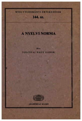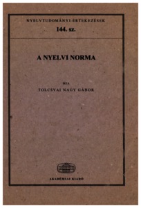 Tolcsvai Nagy, Gábor (1998) A nyelvi norma. Nyelvtudományi értekezések (144). Akadémiai Kiadó, Budapest. ISBN 963-05-7532-9