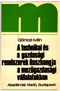 Gönczi, Iván (1974) A technikai és gazdasági rendszerek összhangja a mezőgazdasági vállalatokban. A mezőgazdaság műszaki fejlesztésének tudományos kérdései (6). Akadémiai Kiadó, Budapest. ISBN 963-05-0126-0