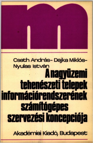 Csath, András and Dajka, Miklós and Nyulas, István (1976) A nagyüzemi tehenészeti telepek információrendszerének számítógépes szervezési koncepciója. A mezőgazdaság műszaki fejlesztésének tudományos kérdései (17). Akadémiai Kiadó, Budapest. ISBN 963-05-1198-3