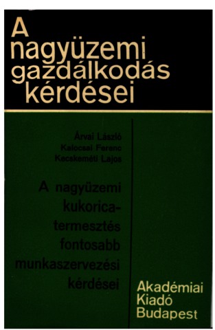 Árvai, László and Kalocsay, Ferenc and Kecskeméti, Lajos (1967) A nagyüzemi kukoricatermelés fontosabb munkaszervezési kérdései. A nagyüzemi gazdálkodás kérdései . Akadémiai Kiadó, Budapest.