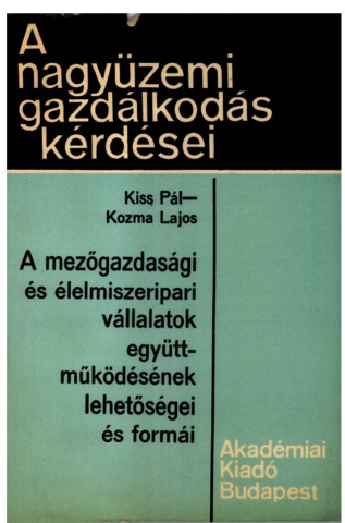 Kiss, Pál and Kozma, Lajos (1971) A mezőgazdasági és élelmiszeripari vállalatok együttműködésének lehetőségei és formái. A nagyüzemi gazdálkodás kérdései . Akadémiai Kiadó, Budapest.