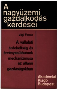 Vági, Ferenc (1973) A vállalati érdekeltség és érvényesülésének mechanizmusa az állami gazdaságokban. A nagyüzemi gazdálkodás kérdései . Akadémiai Kiadó, Budapest.