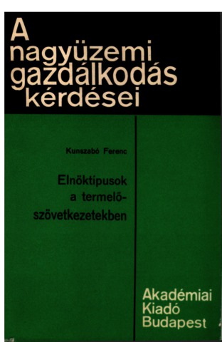 Kunszabó, Ferenc (1974) Elnöktípusok a termelőszövetkezetekben. A nagyüzemi gazdálkodás kérdései . Akadémiai Kiadó, Budapest. ISBN 963-05-0391-3