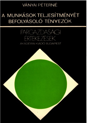 Ványai, Péterné (1978) A munkások teljesítményét befolyásoló tényezők. Ipargazdasági értekezések (9). Akadémiai Kiadó, Budapest. ISBN 963-05-1415-X