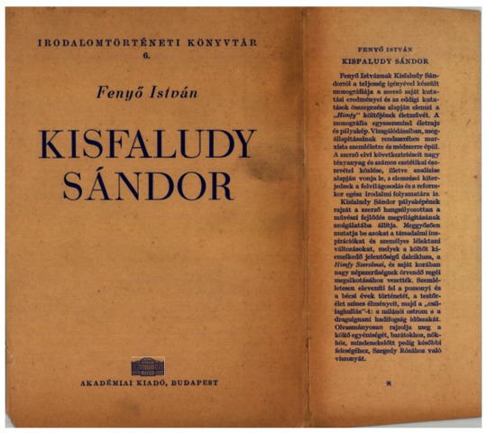 Fenyő, István (1961) Kisfaludy Sándor. Irodalomtörténeti könyvtár (6). Akadémiai Kiadó, Budapest.