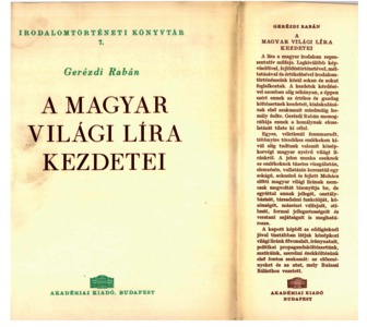 Gerézdi, Rabán (1962) A magyar világi líra kezdetei. Irodalomtörténeti könyvtár (7). Akadémiai Kiadó, Budapest.