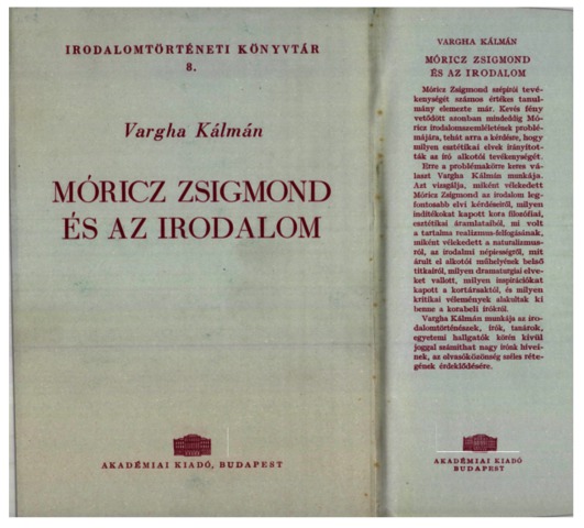 Vargha, Kálmán (1962) Móricz Zsigmond és az irodalom. Irodalomtörténeti könyvtár (8). Akadémiai Kiadó, Budapest.