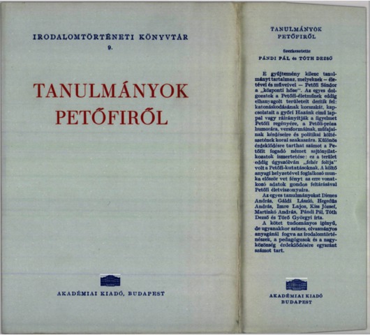 Pándi, Pál and Tóth, Dezső, eds. (1962) Tanulmányok Petőfiről. Irodalomtörténeti könyvtár (9). Akadémiai Kiadó, Budapest.
