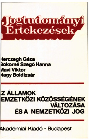 Herczegh, Géza (1993) Az államok nemzetközi közösségének változása és a nemzetközi jog. Jogtudományi értekezések . Akadémiai Kiadó, Budapest. ISBN 963-05-6596-X