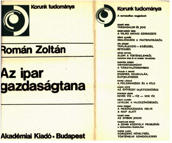 Román, Zoltán (1978) Az ipar gazdaságtana. Korunk tudománya . Akadémiai Kiadó, Budapest. ISBN 963-05-1540-7