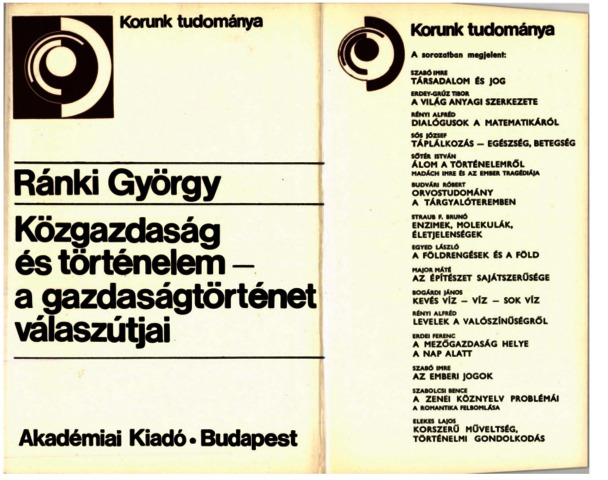 Ránki, György (1977) Közgazdaság és történelem, a gazdaságtörténet válaszútjai. Korunk tudománya . Akadémiai Kiadó, Budapest. ISBN 963-05-1308-0