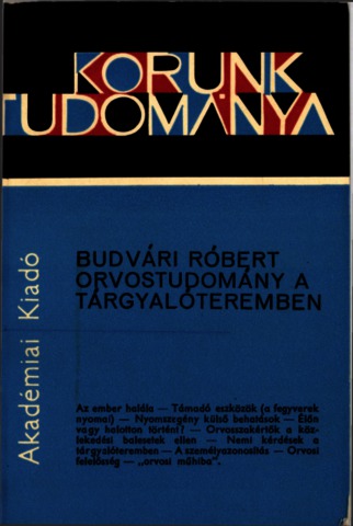 Budvári, Róbert (1966) Orvostudomány a tárgyalóteremben. Korunk tudománya . Akadémiai Kiadó, Budapest.