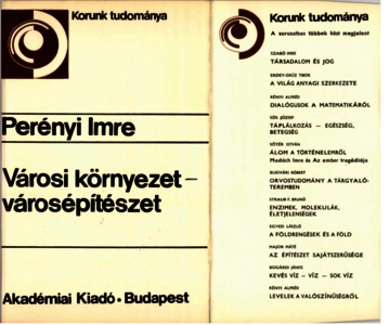 Perényi, Imre (1975) Városi környezet - városépítészet. Korunk tudománya . Akadémiai Kiadó, Budapest. ISBN 963-05-0781-1