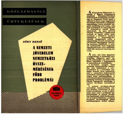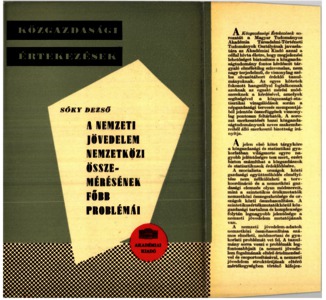 Sóky, Dezső (1962) A nemzeti jövedelem nemzetközi összemérésének fő problémái. Közgazdasági értekezések (1). Akadémiai Kiadó, Budapest.