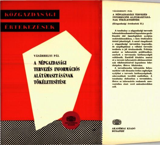 Vásárhelyi, Pál (1977) A népgazdasági tervezés információs alátámasztásának tökéletesítése. Közgazdasági értekezések (25). Akadémiai Kiadó, Budapest. ISBN 963-05-1173-8