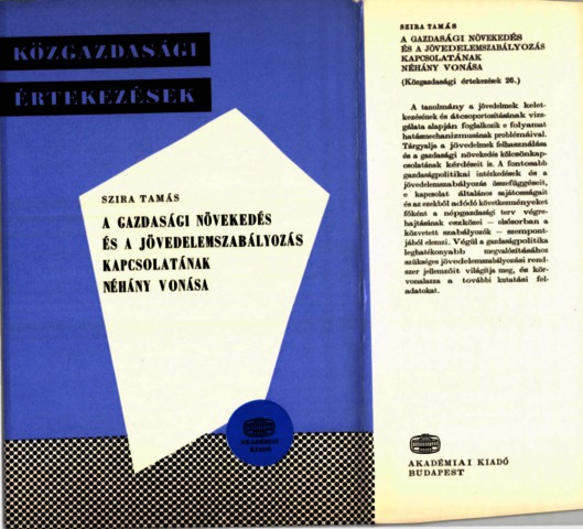 Szira, Tamás (1978) A gazdasági növekedés és a jövedelemszabályozás kapcsolatának néhány vonása. Közgazdasági értekezések (26). Akadémiai Kiadó, Budapest. ISBN 963-05-1501-6