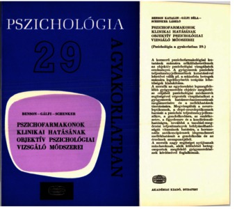 Benson, Katalin and Gálfi, Béla and Schenker, László (1976) Pszichofarmakonok klinikai hatásának objektív pszichológiai vizsgáló módszerei. Pszichológia a gyakorlatban (29). Akadémiai Kiadó, Budapest. ISBN 963-05-0794-3