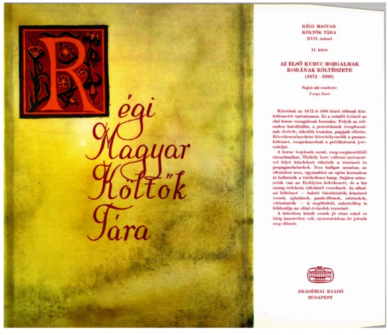 Varga, Imre, ed. (1986) Az első kuruc mozgalmak korának költészete, 1672-1686. Régi magyar költők tára. XVII. század (11). Akadémiai Kiadó, Budapest. ISBN 963-05-3492-4