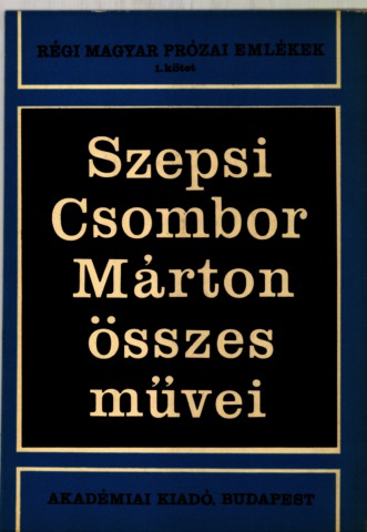Kovács, Sándor and Iván, Kulcsár and Péter, , eds. (1968) Szepsi Csombor Márton összes művei. Régi magyar prózai emlékek (1). Akadémiai Kiadó, Budapest.
