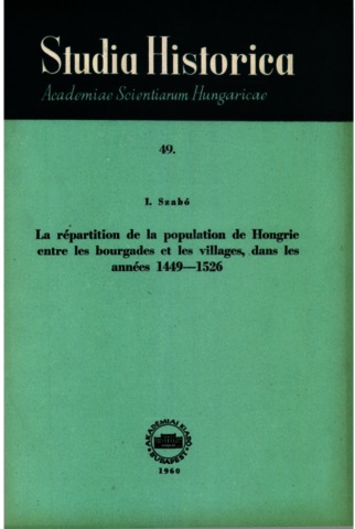 Szabó, István (1960) La répartition de la population de Hongrie entre les bourgades et les villages, dans les années 1449-1526. Studia historica Academiae Scientiarum Hungaricae (49). Akadémiai Kiadó, Budapest.