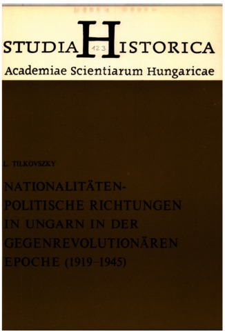 Tilkovszky, Loránt (1975) Nationalitätenpolitische Richtungen in Ungarn in der gegenrevolutionären Epoche 1919-1945. Studia historica Academiae Scientiarum Hungaricae (123). Akadémiai Kiadó, Budapest. ISBN 963-05-0836-2
