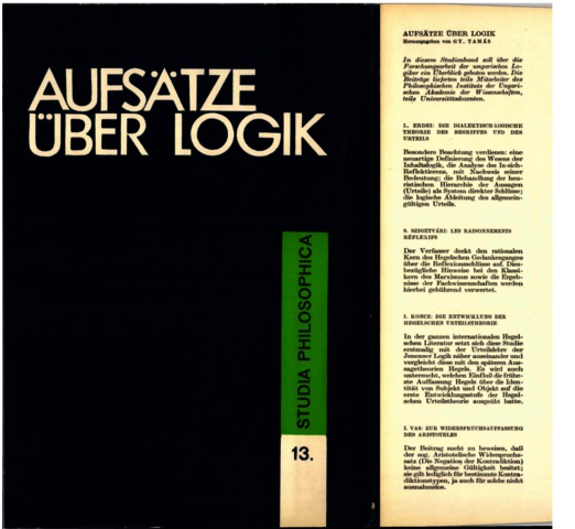 Tamás, György, ed. (1971) Aufsätze über Logik. Studia philosophica Academiae Scientiarum Hungaricae (13). Akadémiai Kiadó, Budapest.
