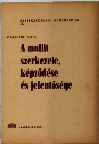 Grofcsik, János (1961) A mullit szerkezete, képződése és jelentősége. Szilikátkémiai monográfiák (2). Akadémiai Kiadó, Budapest.