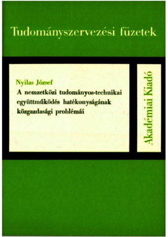 Nyilas, József (1977) A nemzetközi tudományos-technikai együttműködés hatékonyságának közgazdasági problémái. Tudományszervezési füzetek . Akadémiai Kiadó, Budapest. ISBN 963-05-1217-3