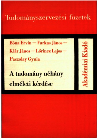 Bóna, Ervin (1970) A tudomány néhány elméleti kérdése. Tudományszervezési füzetek . Akadémiai Kiadó, Budapest.