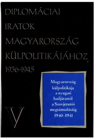 Juhász, Gyula and Fejes, Judit, eds. (1982) Magyarország külpolitikája a nyugati hadjárattól a Szovjetunió megtámadásáig, 1940-41. Diplomáciai iratok Magyarország külpolitikájához, 1936-1945 (5). Akadémiai Kiadó, Budapest. ISBN 963-05-2320-5