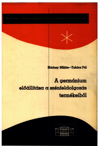 Nádasy, Miklós (1967) A germánium előállítása a szénfeldolgozás termékeiből. Kőszén és kőolaj anyagismereti monográfia sorozat (3). Akadémiai Kiadó, Budapest.